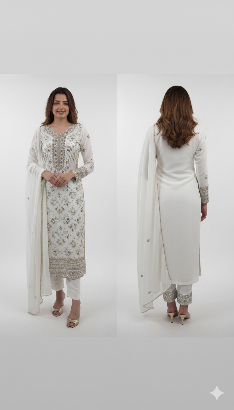 The Embroidered Organza Semi-Stitched Dress Material is more than just fabric — it’s an invitation to create your own couture-worthy outfit. With delicate embroidery, lightweight organza, and versatile semi-stitched design, it empowers you to design a graceful, elegant, and one-of-a-kind ensemble.